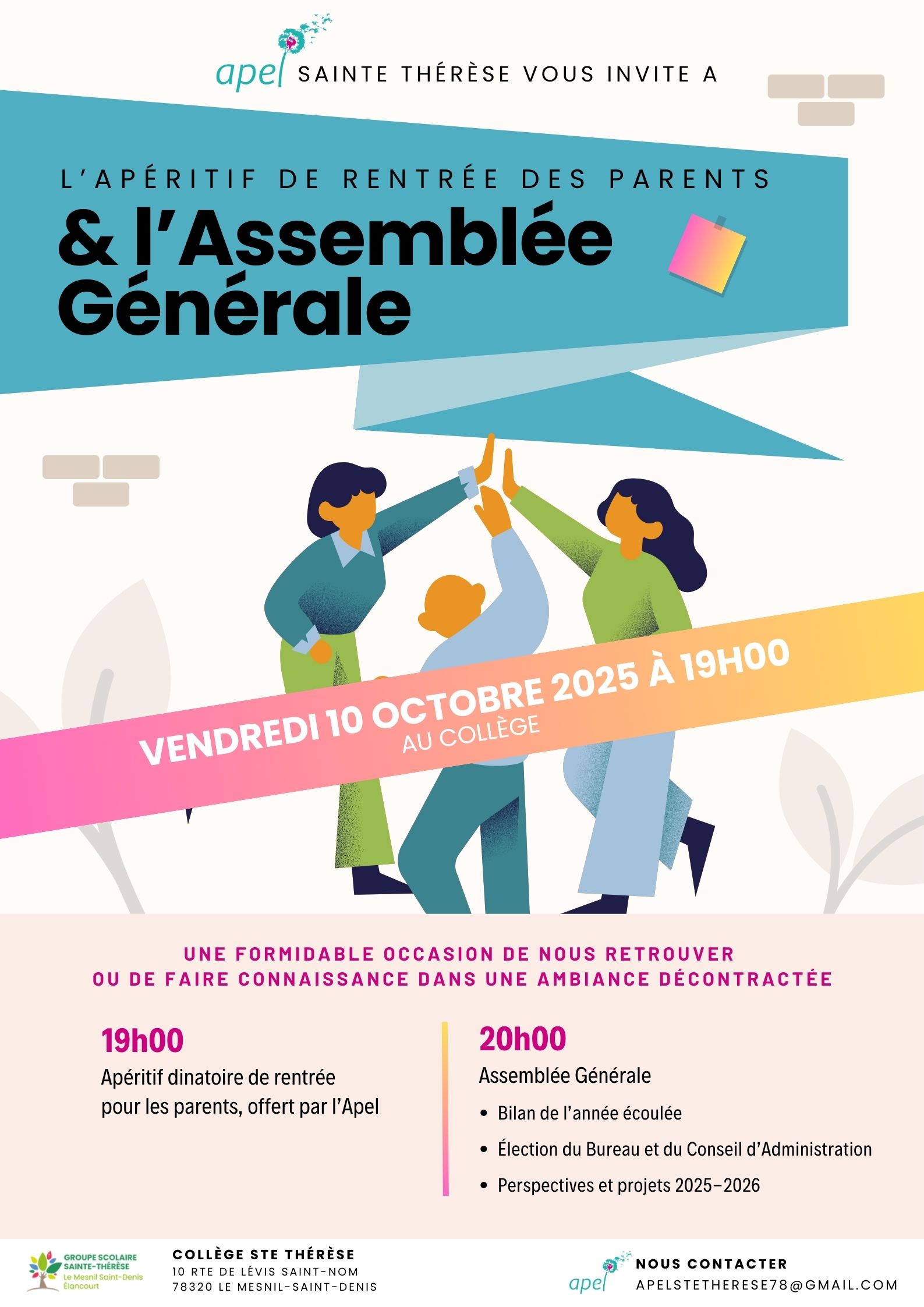 🥂 Cocktail de rentrée & Assemblée Générale APEL 🎉
